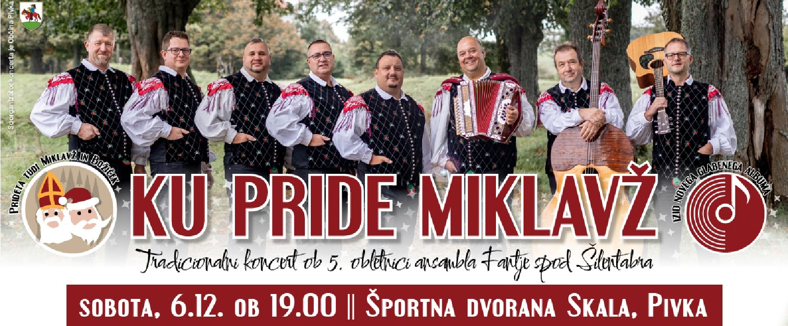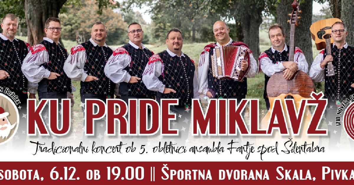 Dragi prijatelji dobre glasbe in pravega veselja! Fantje spod Šilentabra letos praznujemo 5. obletnico delovanja, zato vas z velikim veseljem vabimo na tradicionalni koncert »Ku pride Miklavž«, ki bo tudi tokrat poln smeha, topline in nepozabne glasbe! Na odru se nam bodo pridružili še odlični glasbeni gostje: Ansambel Spev Ansambel Naveza Ansambel Javor Klapa Škvadra Staro za novo … in še mnoga glasbena presenečenja