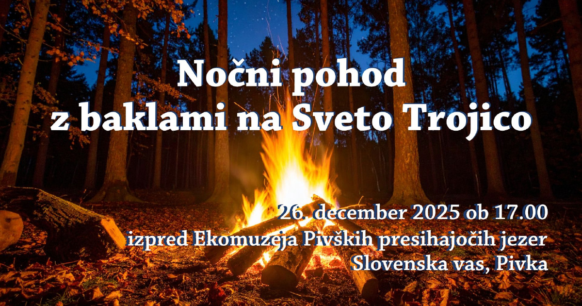 Turistično društvo Pivka vabi na tradicionalni Nočni pohod z baklami na Sveto Trojico, ki bo na dan samostojnosti in enotnosti, v petek, 26. decembra 2025.